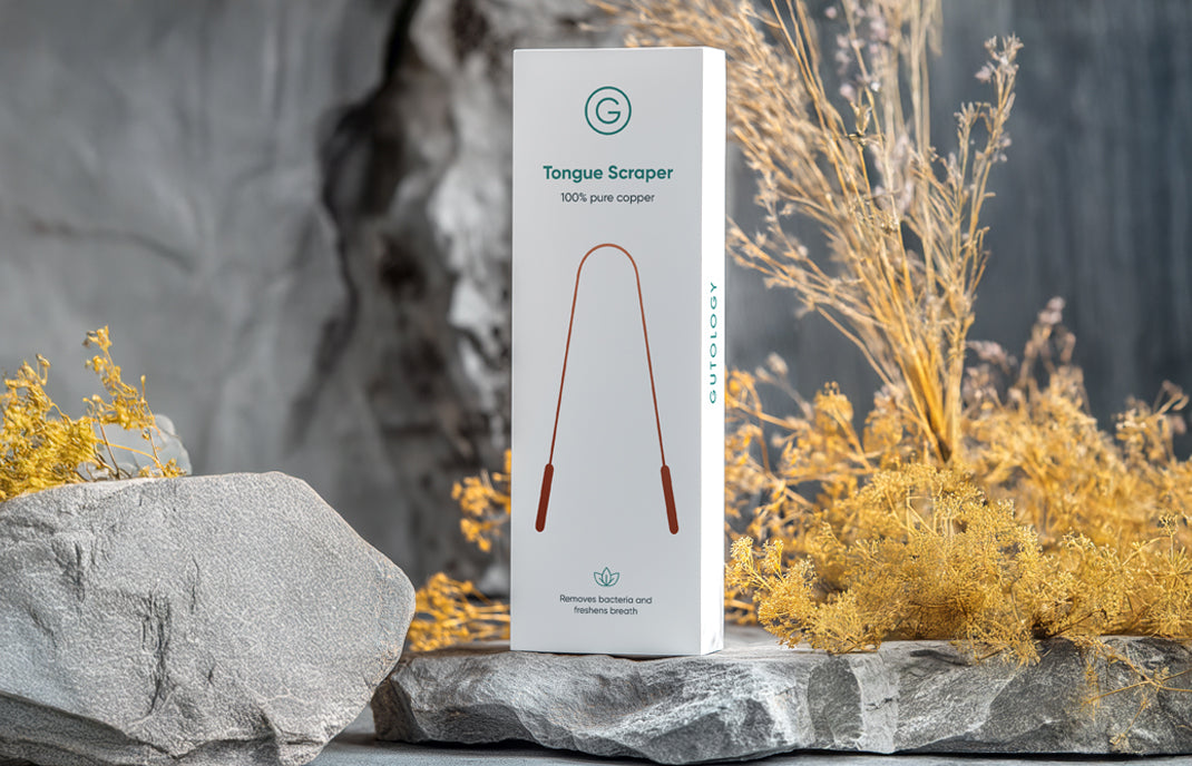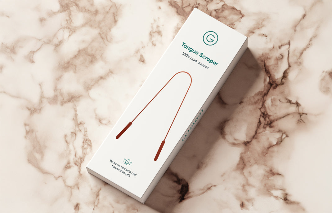 The Gutology Tongue Scraper is crafted from 100% pure copper, a natural, antibacterial metal known for its durability and oral health benefits.